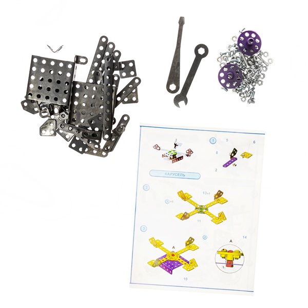 Модели в данном наборе объединяет тема транспортных средств и механизмов, имеющих винтообразные лопастные конструктивные элементы: вертолет, самолет, мельница и карусель. Соберите их все с обучающим набором металлического конструктора «Школьный-2»!