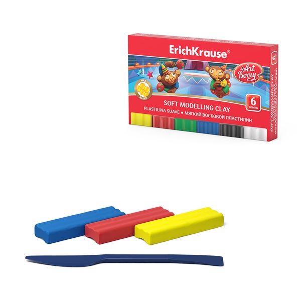ПЛАСТИЛИН ВОСКОВОЙ МЯГКИЙ 6ЦВ 78Г (СО СТЕКОМ) ERICH KRAUSE 53414