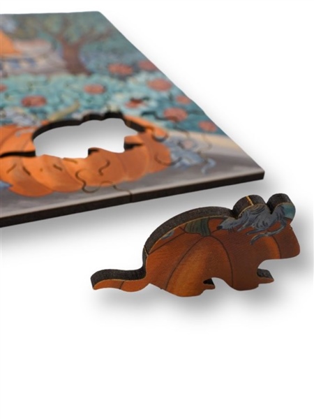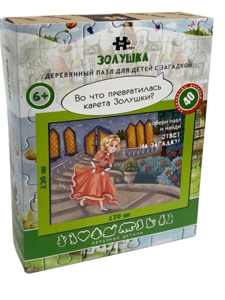 Пазл из дерева для ребенка с загадкой и головоломкой в которой удален элемент в изображении картинки на упаковке. Ребенок собирает пазл и находит ответ на вопрос. При сборке пазла он увидит отсутствующую задуманную часть сюжета решает головоломку и отгадывает загадку. Пазл разделен на элементы необычной оригинальной формы и креплений, которые предстоит правильно подобрать и соединить во время игры, а некоторые образные детали могут быть тематическими, фигурными в контексте сюжета пазла.