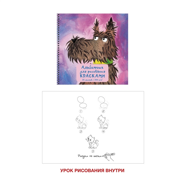 АЛЬБОМ Д/РИС 20Л 190*190 ЭКСМО СПИРАЛЬ ЛАК/ЧАСТ/ ПУШИСТАЯ СОБАЧКА АСЛ202479