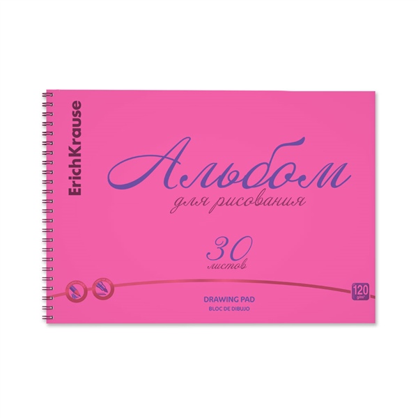 АЛЬБОМ Д/РИС 30Л ERICH KRAUSE СПИРАЛЬ NEON РОЗОВЫЙ (ПЛАСТИК ОБЛ) 58602