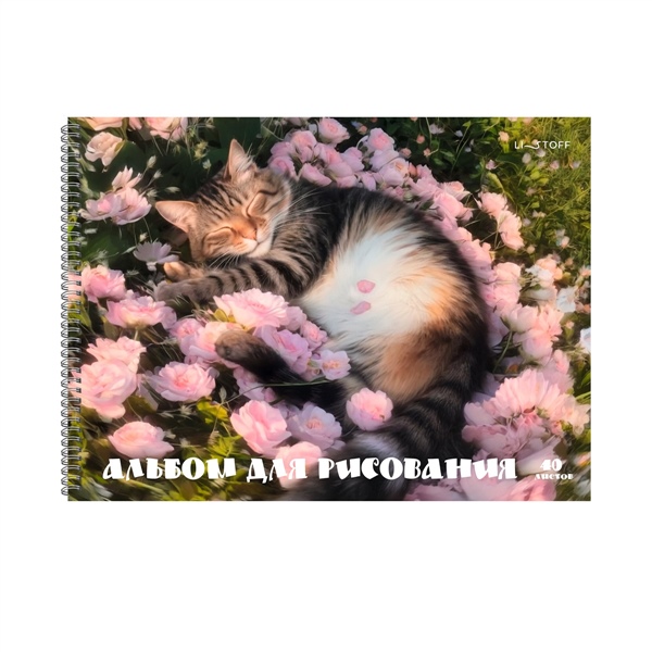 АЛЬБОМ Д/РИС 40Л СПИРАЛЬ ЛАК /ЧАСТ/+ БЛЕСТ ЭКСМО КОТИК В ЦВЕТАХ АРТ.АСБ402648 (3139)
