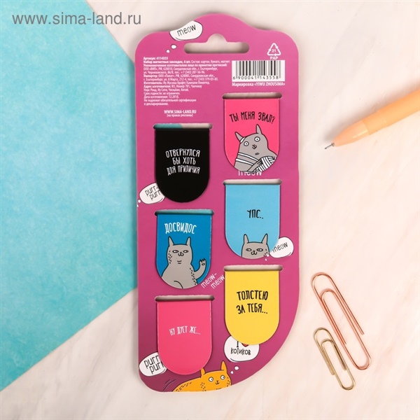 ЗАКЛАДКА НА МАГНИТЕ КОТЕЙКИНЫ (НАБОР 6ШТ) СИМА-ЛЕНД АРТ.4114355
