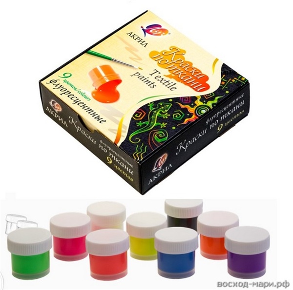 КРАСКИ АКРИЛ ПО ТКАНИ 9ЦВ 15МЛ (ФЛУОР)ЛУЧ29С 1744-08