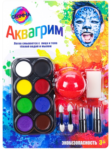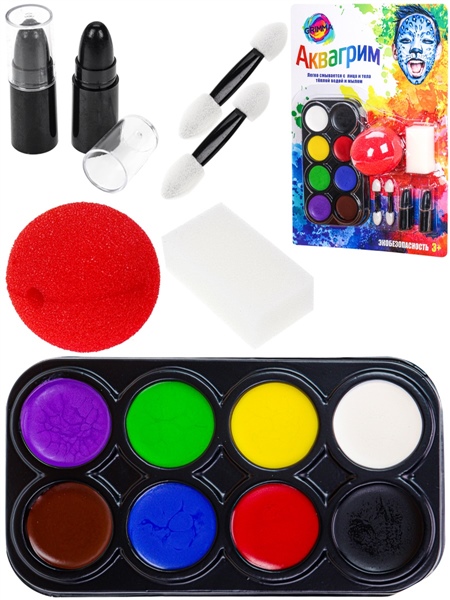 КРАСКИ Д/ГРИМА 6ЦВ (НОС КЛОУНА-1ШТ,ГУБ. ПОМАДА-2ШТ,СПОНЖ-1ШТ,АППЛ.-2ШТ) (АРТ.КС-4628
