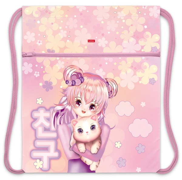 МЕШОК Д/ОБУВИ HATBER 1 ОТД С КАРМАНОМ 34*47 СМ АНИМЕ С КОТИКОМ NMN_29044