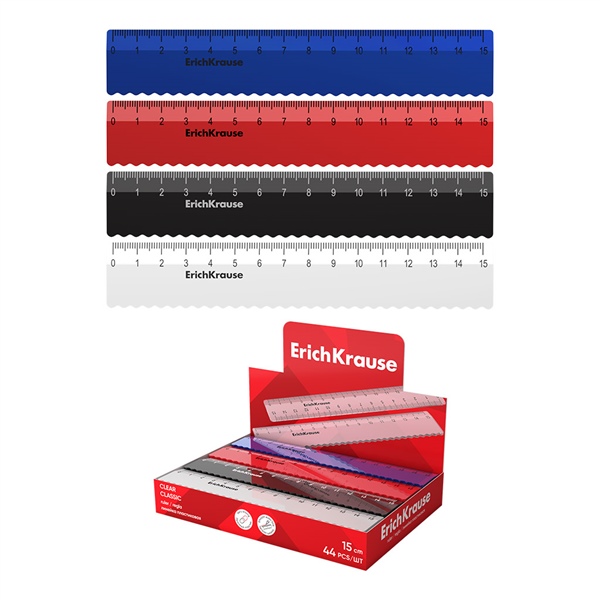 ЛИНЕЙКА 15СМ ПЛАСТИК CLASSIC С ВОЛНИСТ КРАЕМ /ДИСПЛЕЙ/ EK 61761