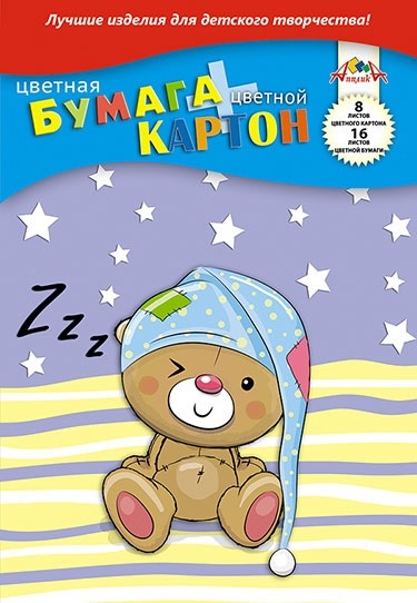 ЦВ КАРТОН 8Л 8 ЦВ+ЦВ БУМАГА 16Л 16 ЦВ А4 /ПАПКА/ МЕДВЕЖОНОК С1832-13