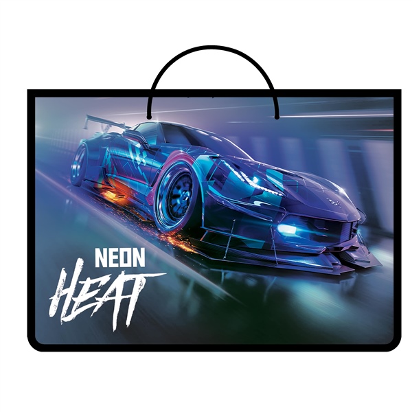 ПАПКА С РУЧКАМИ А4 55 ММ NEON CAR /ПЛАСТИК/ШНУРОК/ ПЧЕЛКА ПМ-А4-35 (8806)