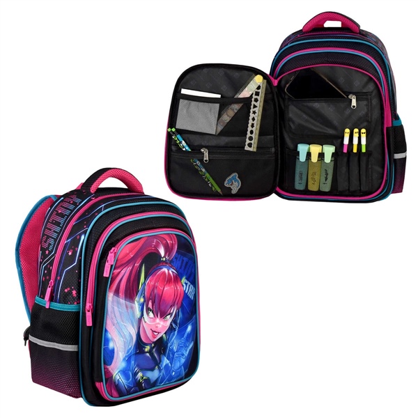 Рюкзак школьный Феникс+ арт.61438/ 20 КОСМОСТАР (29х38.5х13.5 см, полиэстер, сублимация, 2 отделение (-я), молния, тип спинки: формоустойчивая спинка из сетчатой ткани и поролона, тип дна: с пластиковыми ножками.