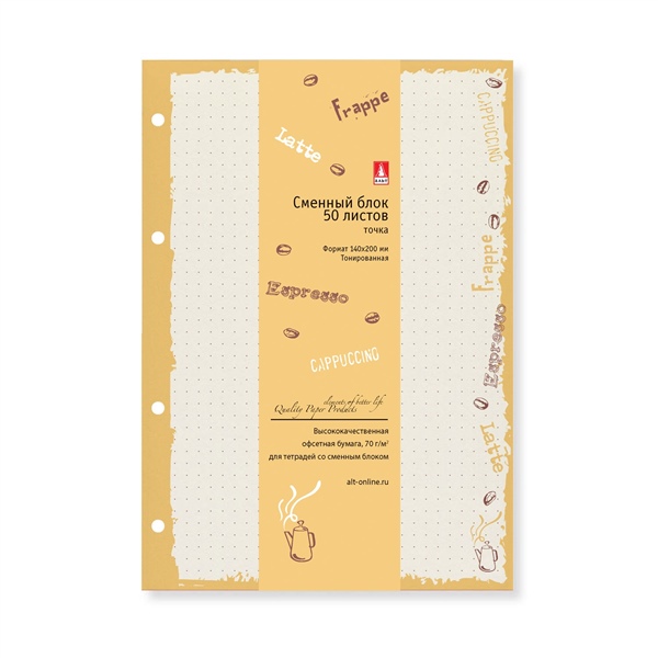 СМЕННЫЙ БЛОК Д/ТЕТР НА КОЛЬЦАХ 50Л А5 В ТОЧКУ БЕЖЕВЫЙ COFFEE TIME 7-50-471/11 (9855)