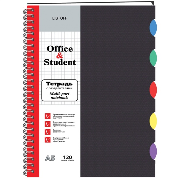 ТЕТР 120 КЛЕТ ЭКСМО А5 СПИРАЛЬ С 5-Ю ПЛАСТ РАЗДЕЛ ЧЕРНАЯ АРТ.ТПР512031 (8479)