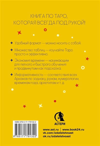 Карманный справочник — удобно, быстро и практично. Книга, которая поможет вам освоить язык карт Таро, научит, как работать с ними безопасно и эффективно, а также даст полезные советы для вдумчивой работы с картами. Почему стоит прочитать эту книгу? 1. Просто и понятно о самом важном. Материал построен так, что экономит время при изучении Таро, все самое главное о картах в одной книге. 2. Полная информация. Младшие Арканы не обделены вниманием, об их значениях и архетипах сказано не меньше, чем о Старших. 3. Удобный формат. Книга, которую можно всегда носить с собой. "Карманный справочник Таро" поместится даже в сумочку и будет всегда рядом, когда вам потребуется его помощь!