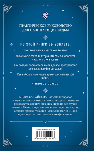 Практичная и позитивная книга Мелиссы Сайнова, автора популярного руководства «Таро на все случаи жизни», — идеальное начало для захватывающего путешествия в мир магии, древней и современной. Это простое и остроумное руководство для начинающих подойдет тем, кто верит в житейскую мудрость, опыт, разумный и взвешенный подход ко всему, даже к магическим практикам.