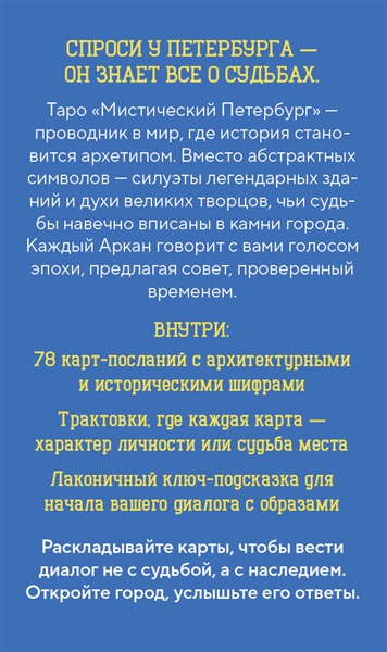 Не предсказывайте будущее — исследуйте наследие. Закажите колоду «Мистический Петербург» и начните свой диалог с гениями места.