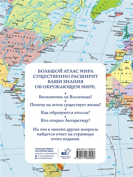 Этот подробный, хорошо иллюстрированный атлас в наглядной и доступной форме дает читателю необходимые основы знаний по широкому кругу вопросов, касающихся устройства окружающего нас мира. Раздел "Земля во Вселенной" посвящён происхождению и эволюции нашей планеты, особенностям ее внутреннего и внешнего строения, обусловившим зарождение жизни на Земле. В разделе "Человек на Земле" в картографическом виде представлено многообразие народов, языков, религий, различных форм человеческой деятельности. Раздел "Политическое устройство мира" содержит обновлённые карты, а также самые важные систематизированные сведения обо всех независимых государствах мира. Россия представлена в новых границах: с Донецкой и Луганской Народными республиками, Запорожской и Херсонской областями, Республикой Крым и Севастополем. Атлас предназначен как для школьников, так и для всех, интересующихся устройством современного мира.