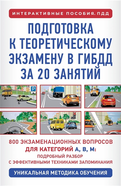 Эта книга — ваш надежный навигатор к успешной сдаче теоретического экзамена в ГИБДД. 20 структурированных занятий охватывают все 800 экзаменационных вопросов: с пояснениями, подсказками и разбором "подводных камней". Пособие помогает не просто запомнить ответы, а понять логику ПДД — чтобы знания остались надолго и стали прочной основой безопасного вождения. Подходит и для занятий в автошколе, и для самостоятельной подготовки. 1 занятие в день — и экзамен в ГИБДД перестанет быть испытанием, а станет простым шагом к новым возможностям!