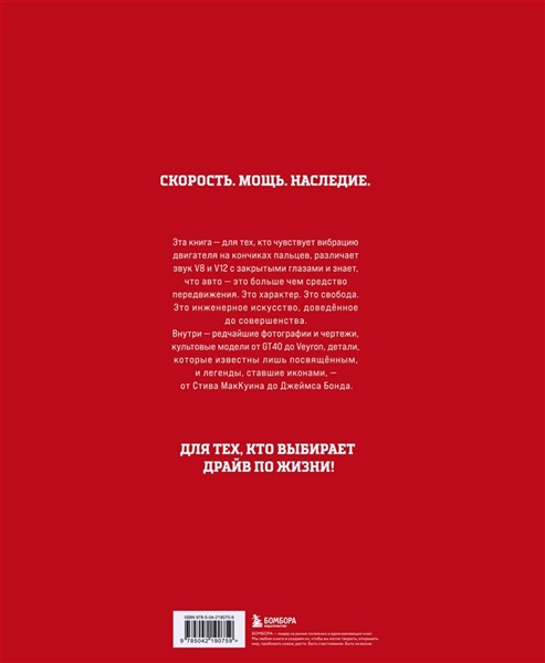 Эта книга — для тех, кто чувствует вибрацию двигателя на кончиках пальцев, различает звук V8 и V12 с закрытыми глазами и знает, что авто — это больше, чем средство передвижения. Это характер. Это свобода.
