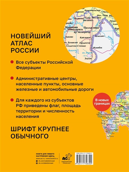В этом популярном атласе мира формата 21х28 см (мягкаяобложка из плотного картона) представлены административные карты всех субъектов Российской Федерации. Для каждого субъекта приведены флаг, площадь территории и численность населения. Россия представлена в новых границах: с Донецкой и Луганской Народными республиками, Запорожской и Херсонской областями, Республикой Крым и Севастополем. Карты атласа представлены в масштабе, позволяющем дать надписи на карте более крупным шрифтом, чем обычно в атласах, что позволит лучше рассмотреть страну. Отмечены административные центры, крупные населенные пункты, основные железные и автомобильные дороги. Наш атлас - подробная информация всегда под рукой в регулярно обновляемом издании.