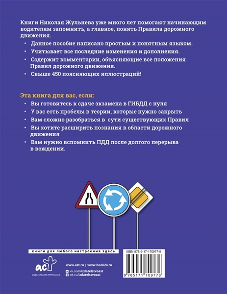 Книги Николая Жульнева уже много лет помогают начинающим водителям запомнить, а главное, понять Правила дорожного движения. Данное пособие написано простым и понятным языком. Учитывает все последние изменения и дополнения.Содержит комментарии, объясняющие все положения Правил дорожного движения. Свыше 450 поясняющих иллюстраций! Эта книга для вас, если: — Вы готовитесь к сдаче экзамена в ГИБДД с нуля — У вас есть пробелы в теории, которые нужно закрыть — Вам сложно разобраться всути существующих Правил — Вы хотите расширить познания в области дорожного движения — Вам нужно вспомнить ПДД после долгого перерыва в вождении.