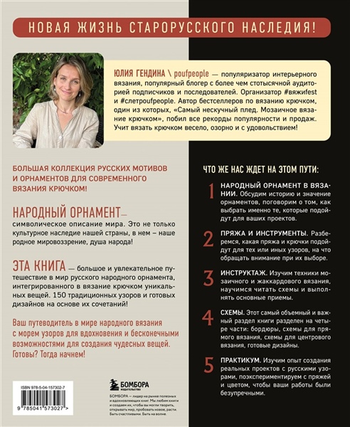 Уникальная книга от автора бестселлера «Самый нескучный плед» Юлии Гендиной! Новая жизнь старорусского культурного наследия!ВПЕРВЫЕ — большая коллекция русских мотивов и орнаментов для современного вязания крючком.