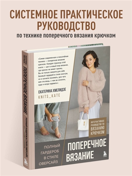 Хмелидзе Е.Ю. ПОПЕРЕЧНОЕ ВЯЗАНИЕ. Полный гардероб в стиле ОВЕРСАЙЗ. Интерактивное руководство по вязанию крючком