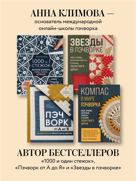 Неважно, сколько вы шьете — только начинаете или уже имеете опыт. Анна научит вас профессионально работать с блоком «Компас», который считается эталоном мастерства в лоскутном шитье. Это не просто сборник идей, а продуманная система, которая ведет вас от простого к сложному без лишнего стресса.
