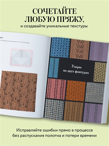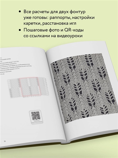 Уникальное издание: 120 авторских узоров для машинного вязания — в одной энциклопедии. Если вы хотите выйти за рамки стандартных библиотек и создавать действительно оригинальные вязаные изделия, эта книга станет вашим главным инструментом. Все узоры разработаны вручную, созданы на основе вязальных схем для вязания спицами и адаптированы специально для вязальной машины. Книга подходит для любого уровня: от первых шагов до профессионального мастерства. В книге: • 120 уникальных узоров, которых нет в программах и перфокартах. • Узоры для одной и двух фонтур, с четкими схемами, размеченными раппортами, информацией по настройкам. • Интуитивная подача материала: одна клетка = одна петля, отмечена рядность и направление движения каретки. • Грамотная структура энциклопедии, которую удобно использовать как справочник. • Интерактив: многие узоры дополнены видеоуроками для лучшего восприятия сложного материала. Вы получите: • библиотеку узоров, готовых к применению в любых проектах; • новые яркие идеи для авторских изделий; • возможность создавать сложные и красивые полотна, по-настоящему «ручной работы»; • уверенность в работе с вязальной машиной на любом уровне. «Каждый узор — это маленькое открытие. Мне хотелось показать, что машинное вязание может быть безграничным, если управлять каждой петлей осознанно и творчески». — Марина Ковальчук Создавайте узоры, которые выделяют ваши изделия. Энциклопедия, к которой вы будете возвращаться снова и снова.