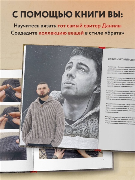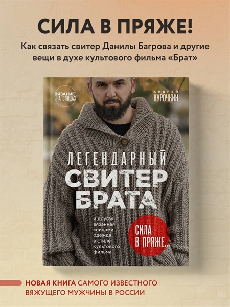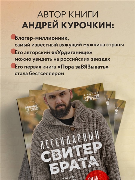 «Это не просто история о вязаном свитере, который стал символом героя своего времени, — это ее продолжение, рассказанное сквозь призму вязания серии простых и эффектных авторских изделий для мужчин, женщин и детей!» — Андрей Курочкин