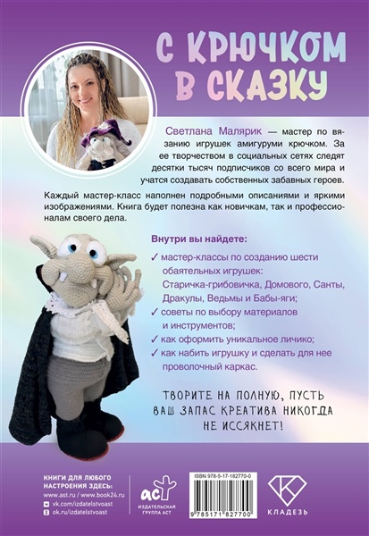 В этой книге собраны легкие и подробные мастер-классы по созданию сказочных игрушек амигуруми. Забавные персонажи — от аристократичного Дракулы до обаятельной Ведьмы — станут оригинальным подарком для близких, отличным украшением для дома и вашими верными спутниками. В их создании помогут подробные пошаговые инструкции, детальные фотографии и полезные рекомендации от автора. Создайте своими руками набор из уникальных игрушек!