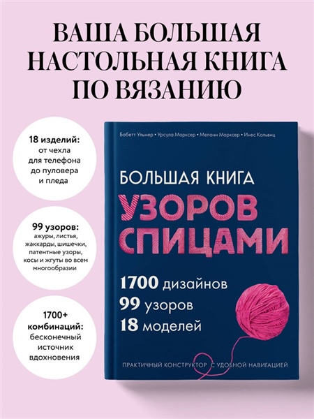 Ульмер Б Большая книга узоров спицами. 1700 дизайнов, 99 узоров, 18 моделей. Практичный конструктор с удобной навигацией
