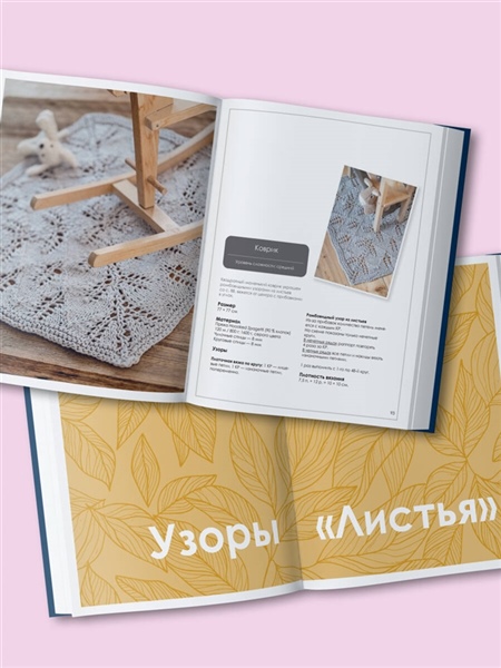 Открыв книгу на любом узоре — например, «Ажурные листья» — вы сразу увидите, как он может выглядеть в разных изделиях. Этот узор может превратиться в изящное болеро, летние носочки, элегантную салфетку или пятнадцать других совершенно разных вещей. И так с каждым из 99 узоров!