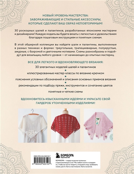 30 роскошных шалей и палантинов, разработанных японскими мастерами и дизайнерами! Схемы разнообразны и подойдут для вязальщиц любого уровня — от начинающих до опытных мастериц.