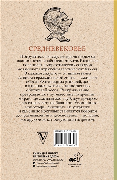 Погрузитесь в эпоху, где время мерилось звоном мечей и шёпотом молитв. Раскраска переносит в мир готических соборов, мозаичных витражей и героических баллад. В каждом силуэте — от шпиля замка до витка геральдической ленты — оживают образы благородных рыцарей, дам в парчовых платьях и таинственных обитателей лесов. Раскрашивание превращается в путешествие по древним мирам, где слышны эхо труб, шум ярмарок и закатный свет над башнями. Уединённые монастыри, сияющие манускрипты и каменные мостовые становятся поводом для размышлений и вдохновения — история, которую можно прочувствовать цветом.