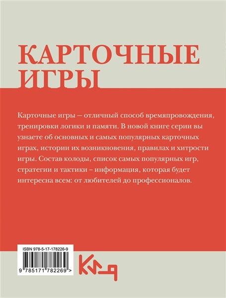 "Как отличить флеш от стрита? Почему в бридже так важны ‘козыри’? Как не ‘прогореть’ в преферансе и когда стоит блефовать в покере?" — эти вопросы встают перед каждым, кто садится за карточный стол, будь то семейный вечер или серьезная игра. Перед вами незаменимый гайд, который откроет мир популярных карточных игр от классики до современных хитов. Внутри вы найдете не только четкие и понятные правила самых распространенных игр (покер, бридж, преферанс, дурак, кинг и многие другие), но и ценные хитрости, стратегии и тактические приемы, которые помогут вам не просто играть, а играть на победу и получать удовольствие!