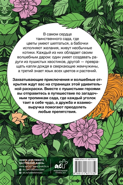 В самом сердце таинственного сада, где цветы умеют шептаться, а бабочки исполняют желания, живут необычные котики. Каждый из них обладает своим волшебным даром: один умеет создавать радуги из пушистых хвостиков, другой — превращать капли дождя в сверкающие жемчужины, а третий знает язык всех цветов и растений. Захватывающие приключения и волшебные открытия ждут вас на страницах этой удивительной раскраски. Вместе с пушистыми героями вы отправитесь в путешествие по загадочным тропинкам сада, где каждый уголок таит в себе чудо, а дружба и взаимовыручка помогают преодолеть любые препятствия.