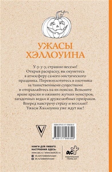 У-у-у-у, страшно весело! Открыв раскраску, вы окунетесь в атмосферу самого мистического праздника. Перевоплотитесь в охотника за таинственными существами и отправляйтесь на их поиски. Возьмите яркие краски и оживите жутких монстров, загадочных ведьм и дружелюбных призраков. Вперед навстречу страху и веселью! Ужасы Хеллоуина уже ждут вас!