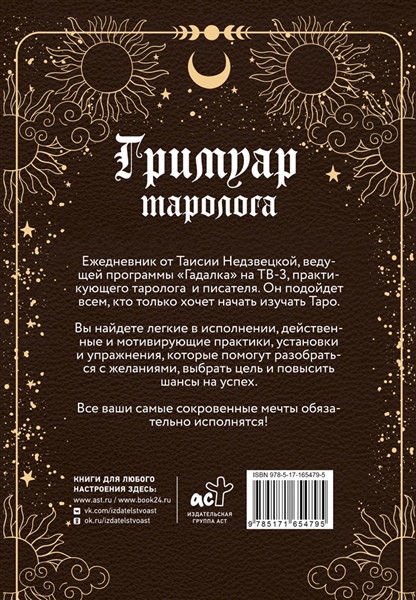 Ежедневник от Таисии Недзвецкой, ведущей программы "Гадалка" на ТВ-3, практикующего таролог и писателя. Он подойдет всем, кто только хочет начать изучать Таро.