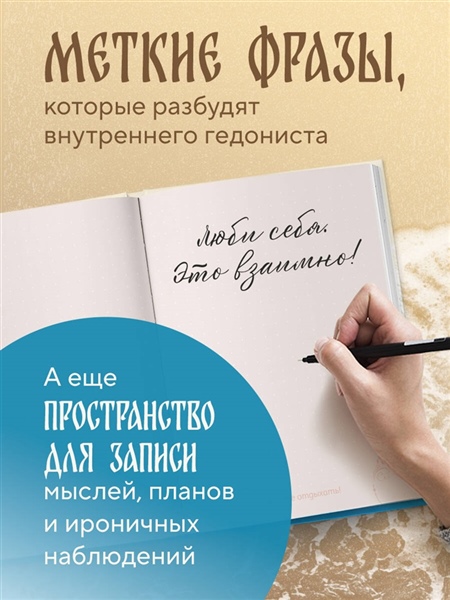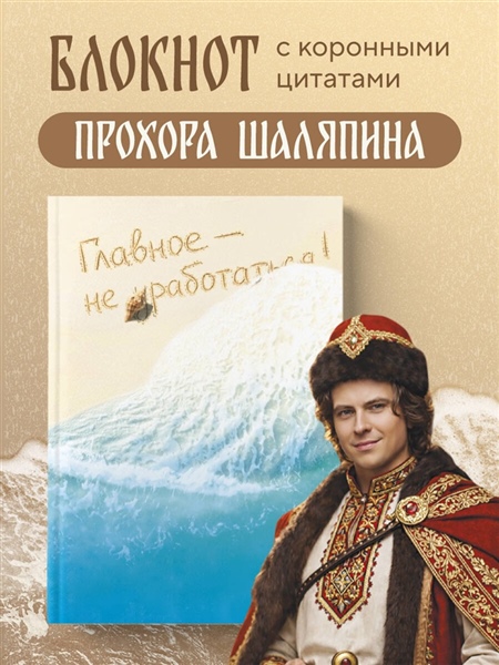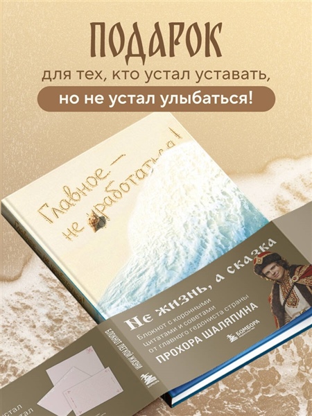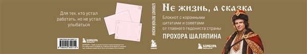 Не жизнь, а сказка! Блокнот с коронными цитатами и советами — от главного гедониста страны Прохора Шаляпина. Внутри — пространство для записи мыслей, планов и ироничных наблюдений за течением жизни. В качестве побочного эффекта у всех, кто пользуется блокнотом, наблюдается резкое повышение самооценки и самоиронии. Для тех, кто устал работать, но не устал улыбаться.