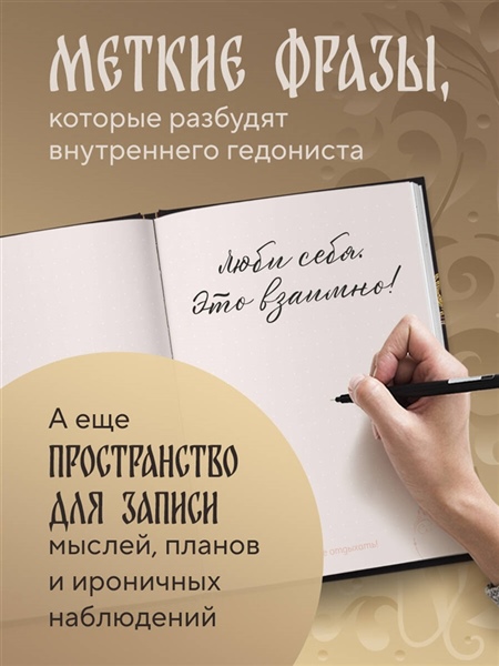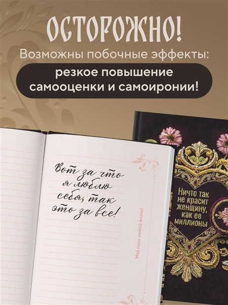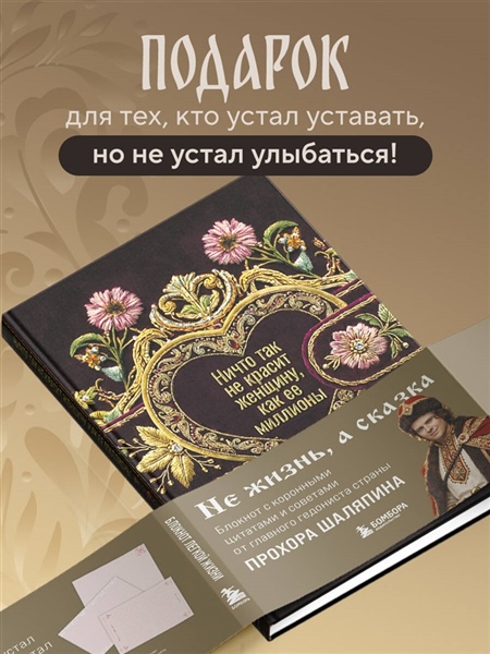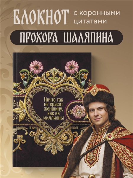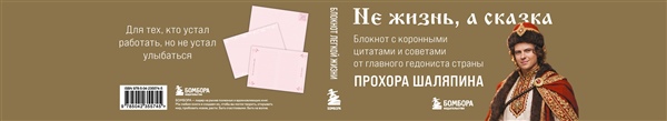 Не жизнь, а сказка! Блокнот с коронными цитатами и советами — от главного гедониста страны Прохора Шаляпина. Внутри — пространство для записи мыслей, планов и ироничных наблюдений за течением жизни. В качестве побочного эффекта у всех, кто пользуется блокнотом, наблюдается резкое повышение самооценки и самоиронии.