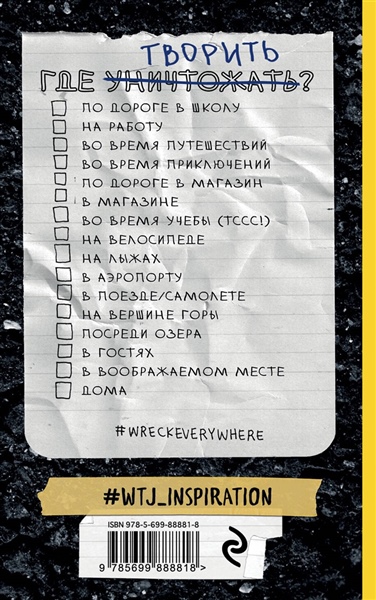 Продолжение книги-сенсации "Уничтожь меня!" (Wreck This Journal).На этот раз Кери Смит предлагает взять блокнот с собой в кино, кафе или парк, чтобы почувствовать, что для творчества не существует никаких границ! Специально для этого блокнот выполнен в удобном карманном формате.Множество новых способов уничтожения, по которым вы уже успели соскучиться, ждут вас внутри этого блокнота!Продолжайте развивать креативность, экспериментировать и делать то, на что никогда раньше не решались!