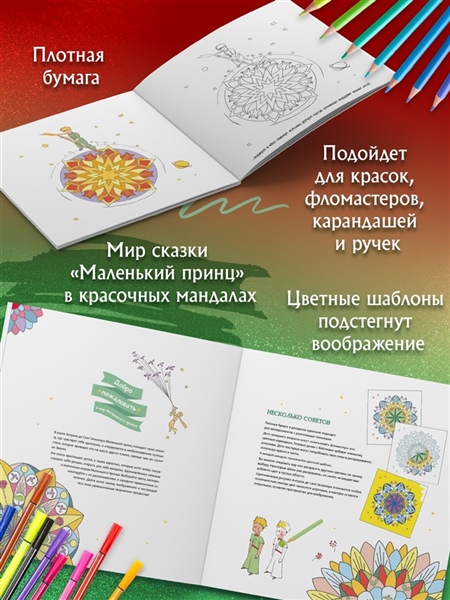 ∙ Отличная полиграфия — высококачественная плотная бумага 120 гр/м² подойдет для любых материалов: карандаши, фломастеры, ручки.
