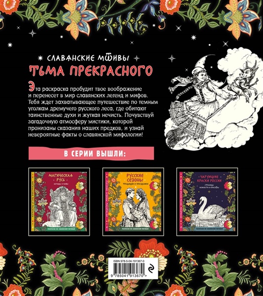 Новая серия раскрасок, основанная на славянских традициях, праздниках и фольклоре. Атмосферные авторские иллюстрации, захватывающие сюжеты и неповторимая эстетика русской культуры — все это в раскрасках серии «Славянские мотивы».