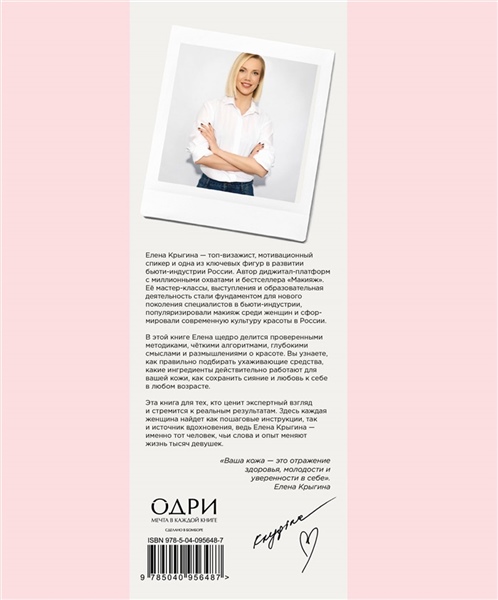 Елена Крыгина — один из самых уважаемых экспертов индустрии красоты, рекомендациям которой доверяют миллионы женщин. Работа над этой книгой заняла у Елены почти десять лет, она консультировалась с генетиками, врачами-косметологами и дерматовенерологами, изучала международные исследования, а также опыт создателей ведущих косметических брендов. В результате получилась честная и вдохновляющая книга по уходу за кожей — практичная, без лишней информации и модных крайностей. Сложные научные знания здесь переведены на понятный язык, а рекомендации выстроены в четкую и логичную систему. Эта книга станет прекрасным подарком для всех, кто хочет получить видимый результат, сохранить свою красоту и научиться ухаживать за собой осознанно, с удовольствием и любовью к себе. Вы найдете исчерпывающие ответы на самые важные вопросы: - Что реально влияет на состояние кожи? - Как на самом деле работают косметические средства? - Что происходит с кожей с возрастом и как адаптироваться к этим изменениям? - Как ухаживать за кожей осознанно, а не слепо следовать трендам?