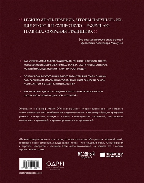 Это книга о страстях, одиночестве, вдохновении и свободе — о том, как один человек сумел превратить шок в красоту и оставить след в модном пантеоне, который не сотрет время.