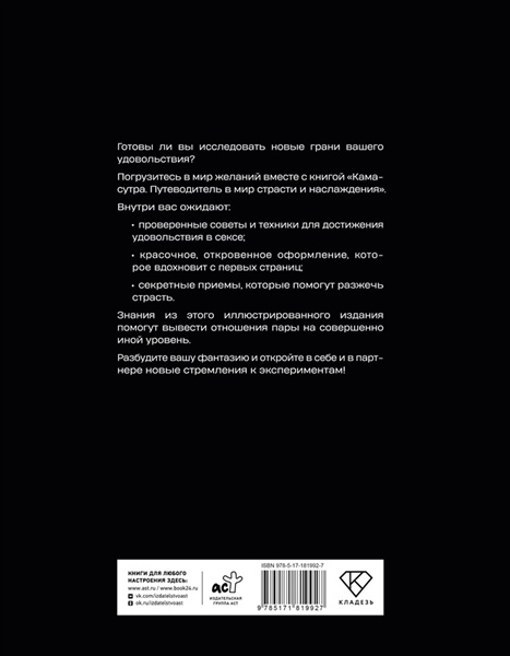 Готовы ли вы исследовать новые грани вашего удовольствия? Погрузитесь в мир желаний вместе с книгой "Камасутра. Путеводитель в мир страсти и наслаждения". Внутри вас ожидают: — проверенные советы и техники для достижения удовольствия в сексе; — красочное, откровенное оформление, которое вдохновит с первых страниц; — секретные приемы, которые помогут разжечь страсть. Знания из этого иллюстрированного издания помогут вывести отношения пары на совершенно иной уровень. Разбудите вашу фантазию и откройте в себе и в партнере новые стремления к экспериментам!