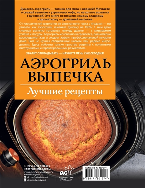 Думаете, аэрогриль — только для мяса и овощей? Мечтаете о свежей выпечке к утреннему кофе, но не хотите возиться с духовкой? Эта книга посвящена самому сладкому и ароматному — домашней выпечке. От классической шарлотки до изысканного тарта с ягодами — вы узнаете, как аэрогриль заменяет духовку на 100%. С ним даже сложная выпечка готовится "между делом" — с минимумом усилий и посуды. Аэрогриль мгновенно нагревается, равномерно распределяет жар и создает эффект профессиональной пекарни дома. Вам не нужны специальные навыки или редкие ингредиенты. Здесь собраны только простые рецепты с понятными инструкциями и гарантированным результатом. Хватит откладывать — начните печь уже сегодня!