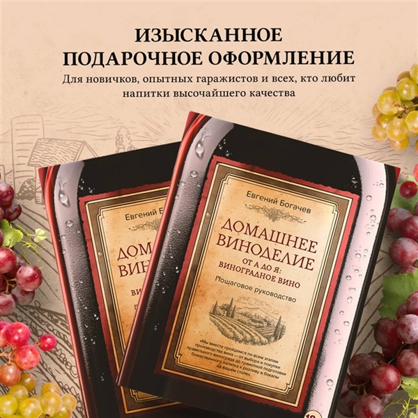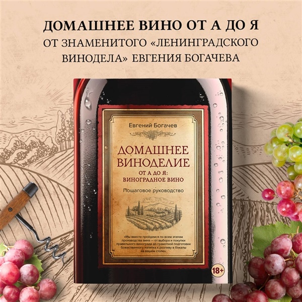 - Пошаговое руководство по домашнему виноделию: от выбора идеального винограда до розлива готового напитка по бокалам — всё объяснено простым и доступным языком.