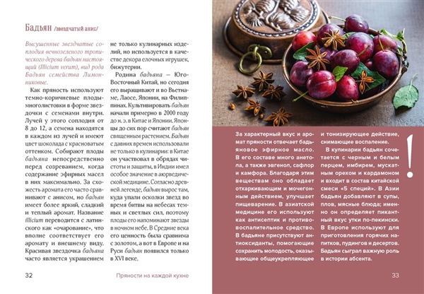 Удобная таблица использования, глоссарий и наглядные иллюстрации делают эту кулинарную книгу с иллюстрациями — яркими фотографиями, которые непременно помогут запомнить каждую пряность, — практичным инструментом. Издание подойдёт как книга в подарок женщине, увлечённой гастрономией, или как универсальный подарок лучшему другу, если вы размышляете, что подарить человеку, который любит готовить и интересуется культурой еды. Это издание помогает слышать вкус — буквально как по нотам.