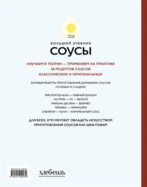 Соусы — то блюдо, с помощью которого обычное превращается в сказочное. Если вы до сей поры готовили мясо, рыбу, птицу, овощи, выпечку без сопровождения этих блюд соусами, пришла пора овладеть с их помощью искусством создания многообразия вкусов. Они удивят ваших близких, изменят ваше представление о еде, они перевернут сознание и заставят забыть, что приготовление еды — скучное дело! Но для этого нужно сначала понять основу блюда: что такое эмульсия, какие вкусы предлагаются (кислый, горький, сладкий и соленый, кисло-сладкий), для чего нужны бульоны, каковы основные продукты и рецепты. А после вы начинаете готовить известные соусы, которые пошагово описаны и проиллюстрированы в этой книге. Полноценный мастер-класс дома!